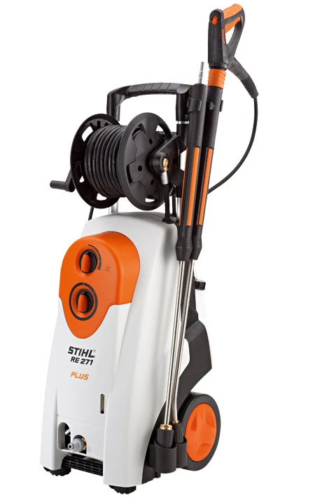 Met langzaam draaiende motor met zeer lange levensduur, geïntegreerde slanghaspel, tweede spuitlans met roterende sproeier en professionele STIHL spuitregeling.