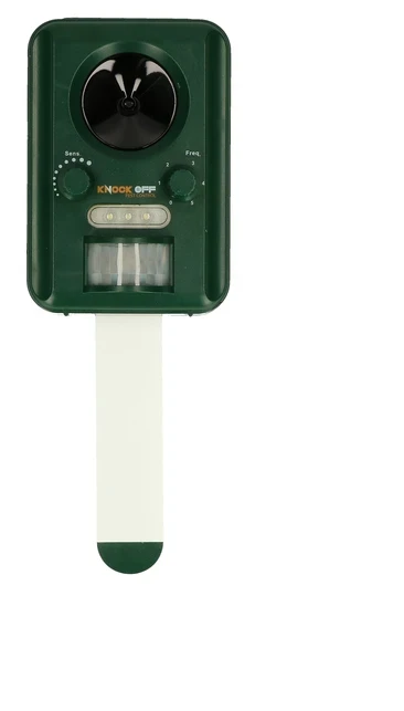 De Knock Off Solar Animal Repeller verjaagt meerdere ongewenste diersoorten uit uw tuin, vijver of erf. Het ultrasone signaal is zeer sterk en komt alleen in werking als er dieren (bijv. ratten, honden, vossen, katten, vogels, marters etc.) in de buurt komen. De Knock Off Solar Animal Repeller beschikt over een bewegingsmelder en flits en kan op verschillende manieren ingesteld worden. De Knock Off Solar Animal Repeller werkt op zonne-energie. Werkt tot ca. 8-10 m afstand.