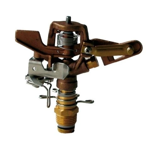 Deze messing sektorsproeier(met een 1/2″ aansluiting) is geschikt voor het gelijkmatig besproeien van grote oppervlaktes. Deze sproeier is voorzien van diverse standen. U kunt eenvoudig instellen welke sector besproeid moet worden. De sproeier kan ingesteld worden door de sectorbegrenzers uit elkaar of naar elkaar toe te draaien. Bij het uit elkaar draaien zal de straal smaller worden, en door deze weer naar elkaar toe te draaien maakt u de straal breder. De sectorbegrenzers zijn de twee haken die net boven het schroefdraad zitten. De sectorsproeier kan ook 360 graden sproeien als u de aanslagveer naar boven klapt.