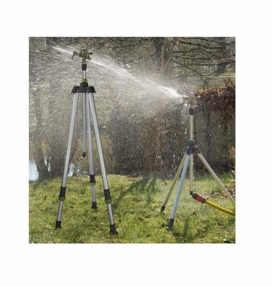 De Sprinkler Tripod High tuinsproeier is voorzien van een inklapbaar aluminium standaard waardoor u de sproeier eenvoudig in de tuin kunt plaatsen. Daarnaast is de standaard ook gemakkelijk in hoogte te verstellen tot een maximum van 150 cm. De tuinsproeier heeft een bereik van 26 meter en een waterverbruik van maximaal 20 liter per minuut.
